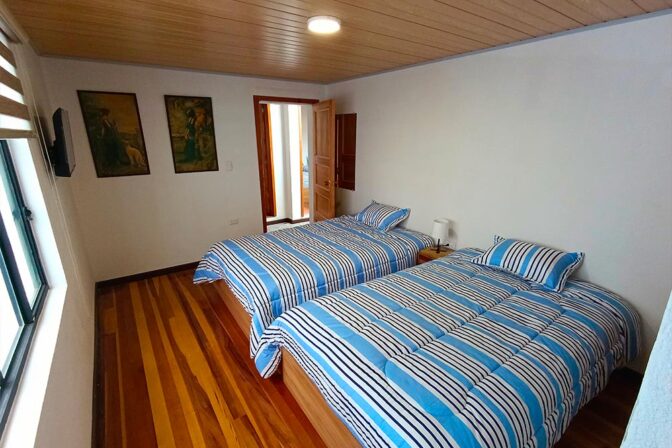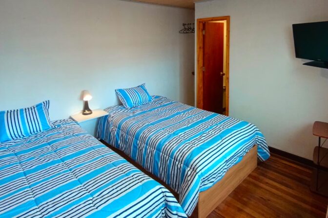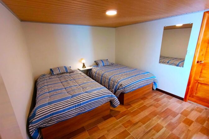 Amplia y cómoda, ideal para parejas.Cuenta con 2 camas semi-dobles, baño privado, Wi-Fi y TV.Cada cama tiene cajones para guardar tus pertenencias…