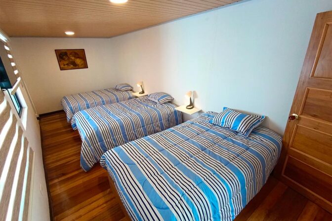 Amplia y cómoda, ideal para familia.Cuenta con 3 camas semi-dobles, baño privado, Wi-Fi y TV.Cada cama tiene cajones para guardar tus pertenencias…